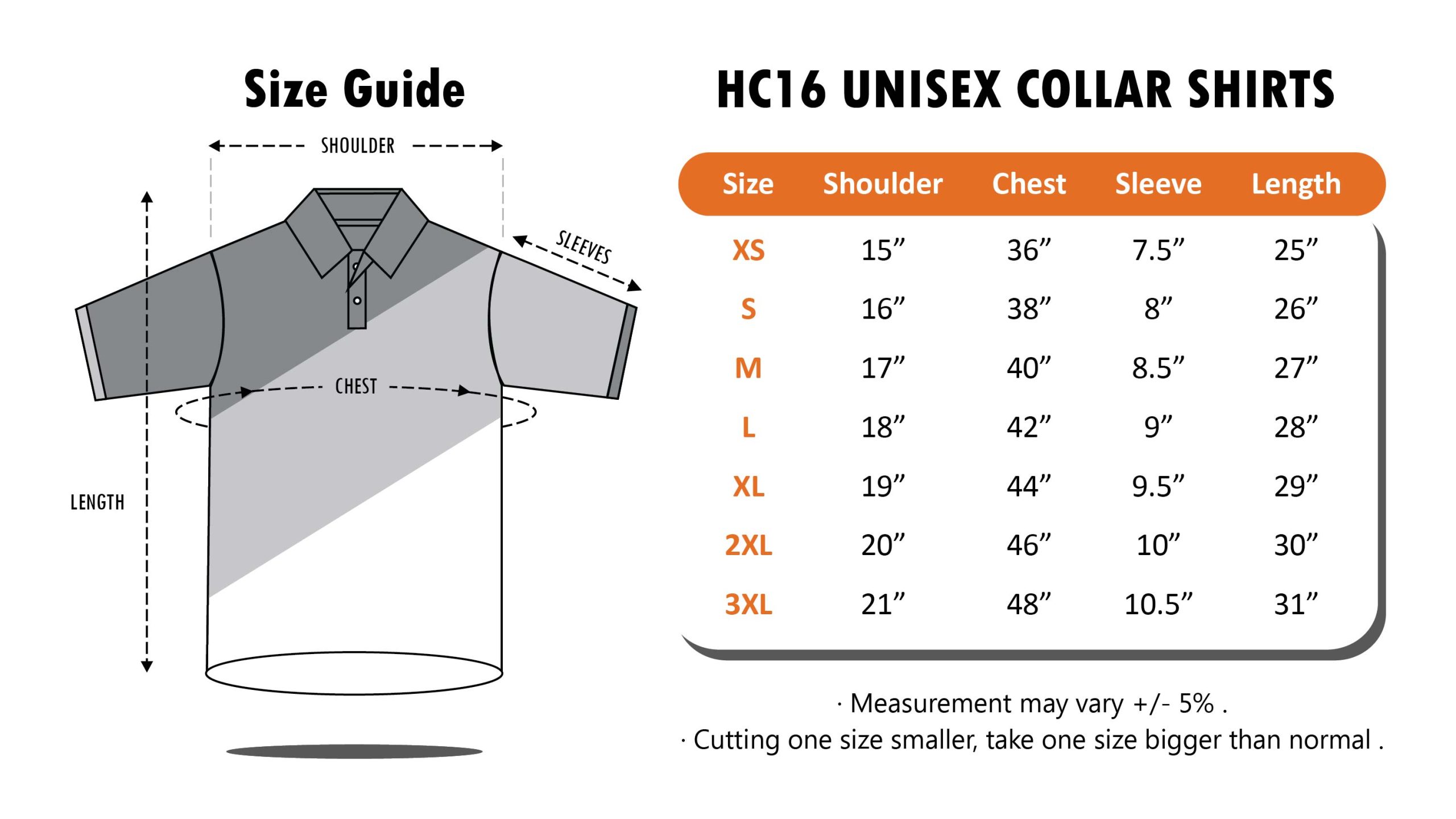 Size | XS, S, M, XL, 2XL, 3XL |