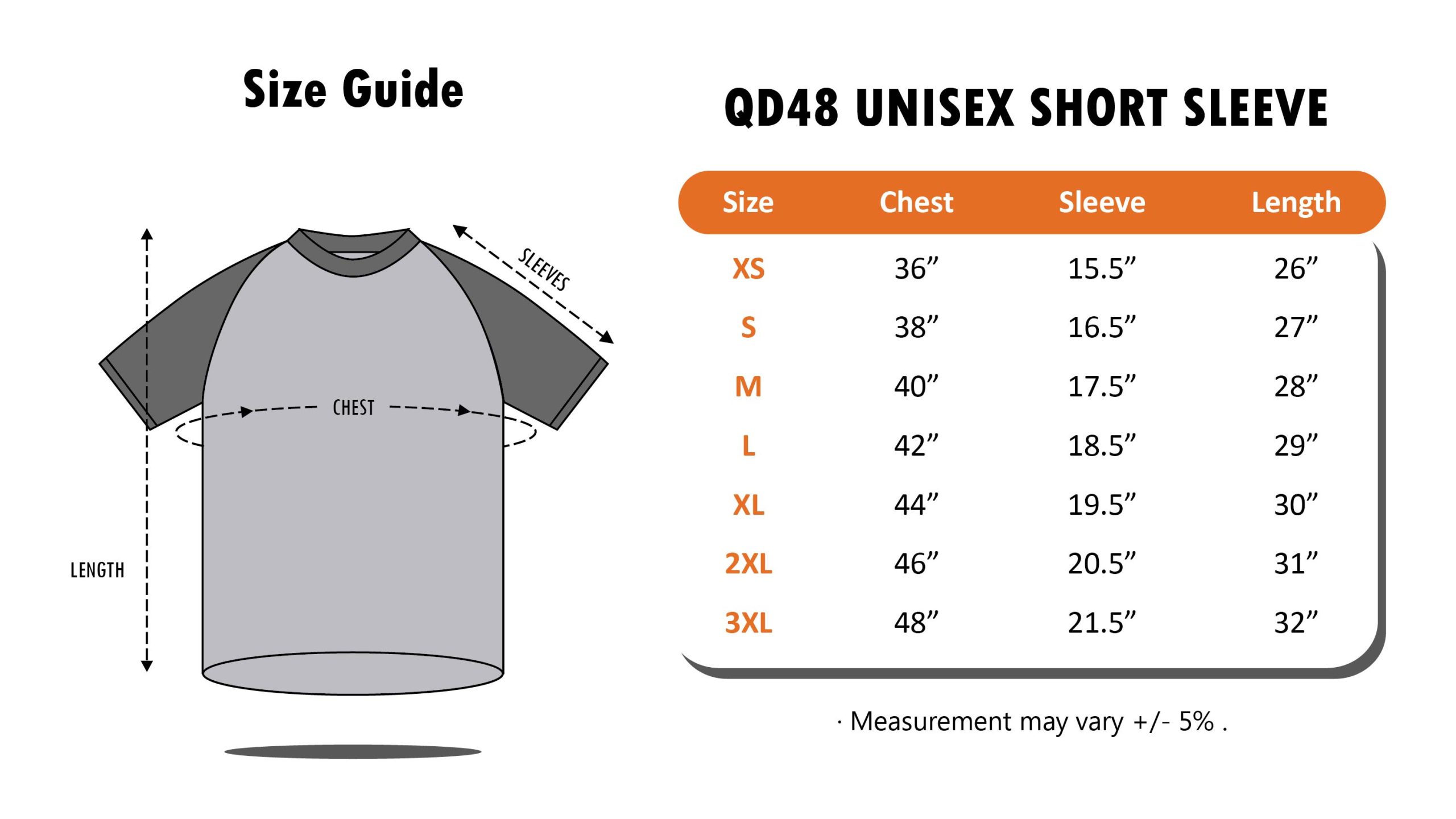 XS, S, M, L, XL, 2XL, 3XL