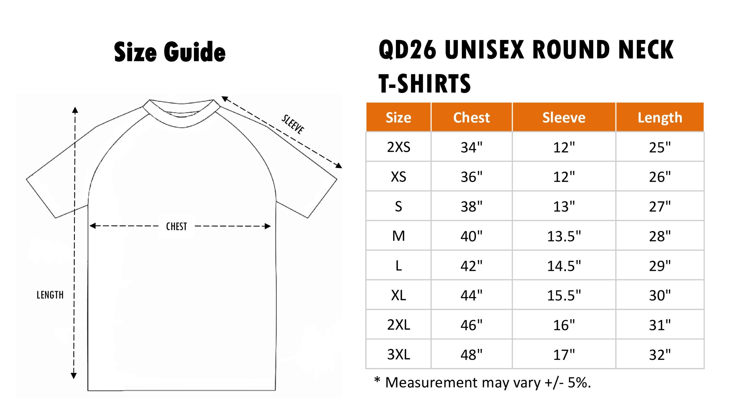 Size | 2XS, XS, S, M, L, XL, 2XL, 3XL |