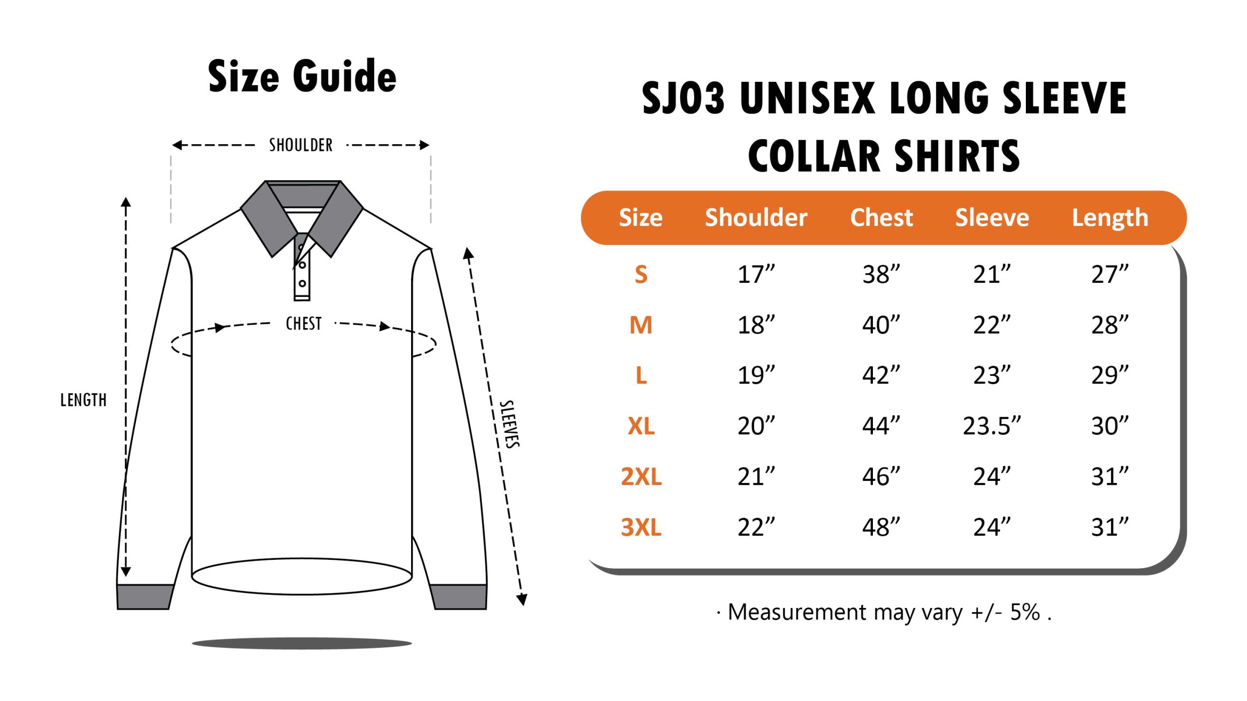 S, M, L, XL, 2XL, 3XL